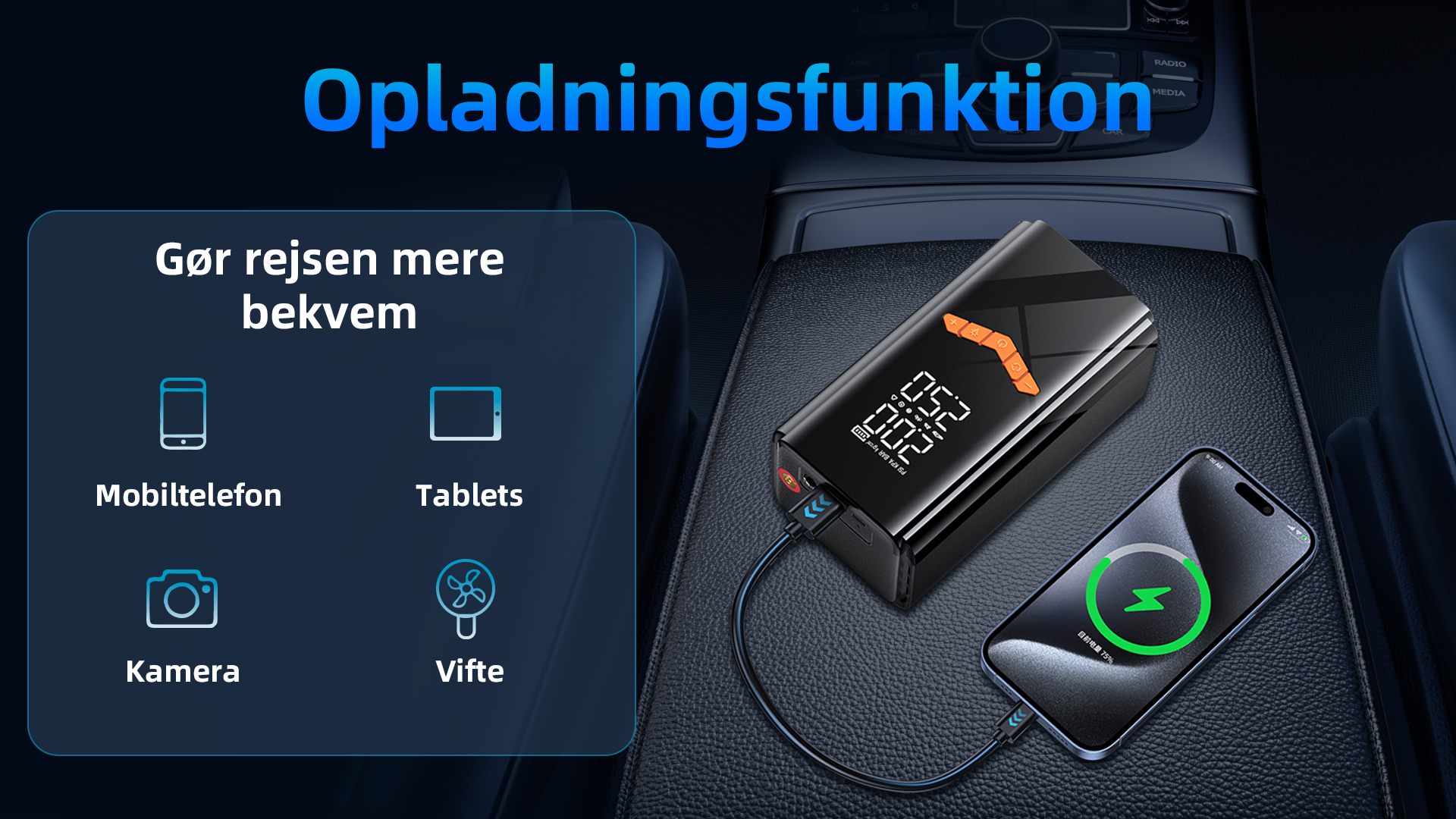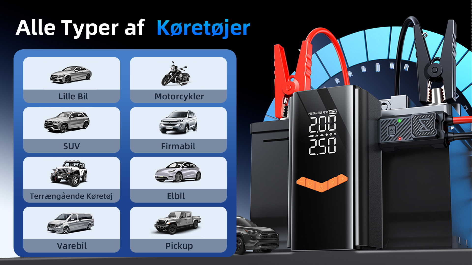 Lumira™ 2 i 1 Batteri Booster & Dækpumpe