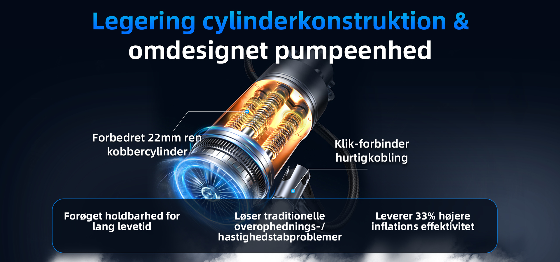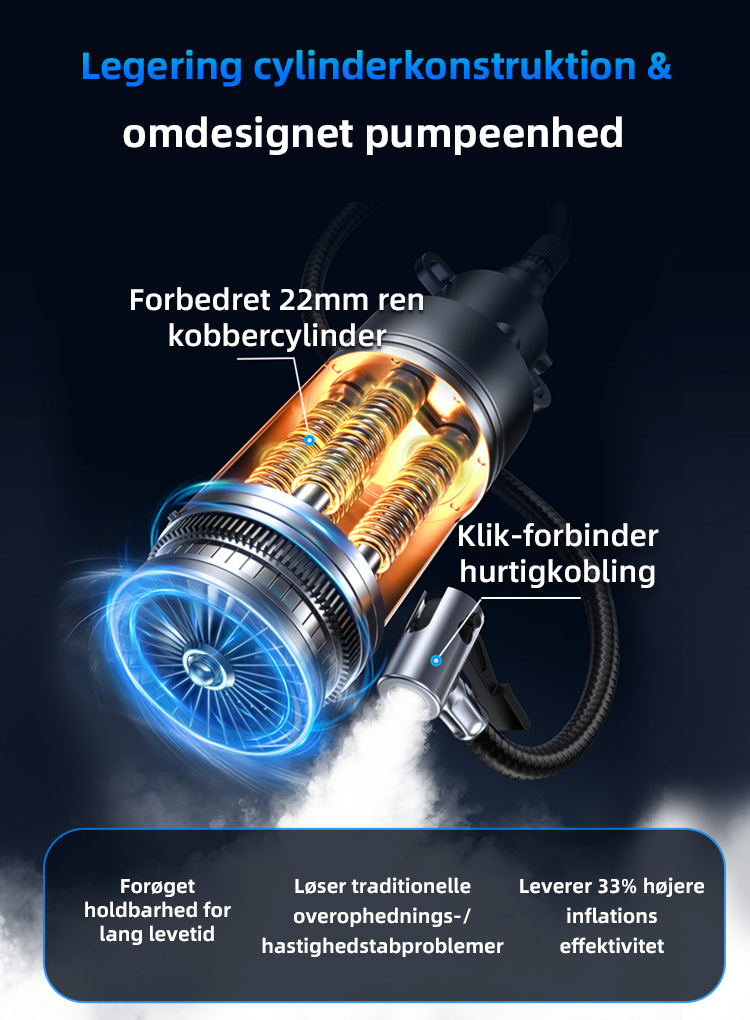 Præcist fremstillet kerne af rent kobber leverer ustoppelig kraft! Vores stempler i flygergrads-legering roterer med 20.000 omdr./min. (33% hurtigere acceleration) for at generere en massiv luftstrøm, samtidig med at de forbruger 33% mindre energi.