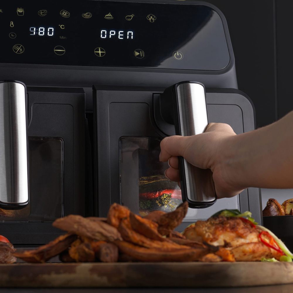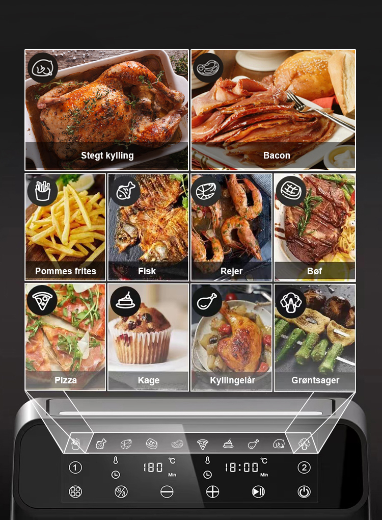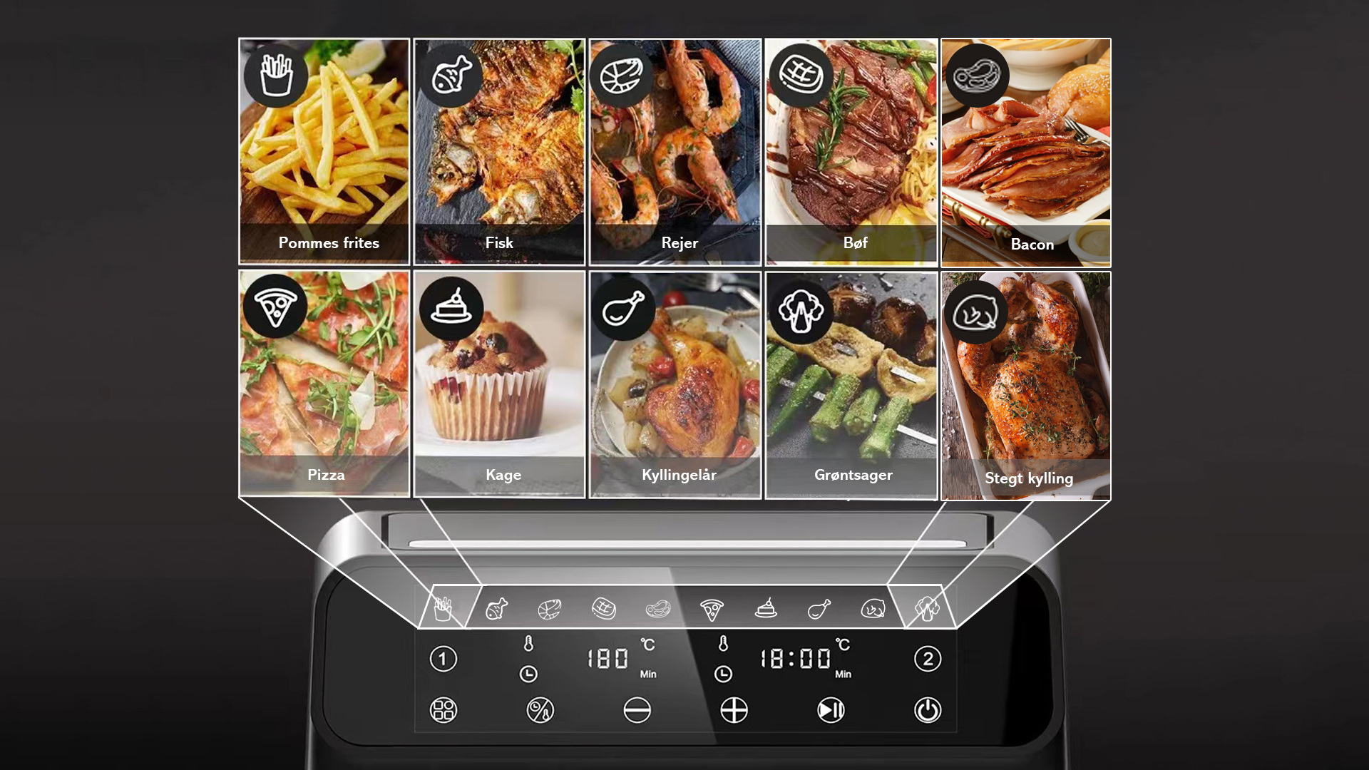 Den bruger overopvarmet luft og et effektivt luftstrømsdesign til at skabe sprødt og lækkert stegt mad uden dårlig samvittighed.