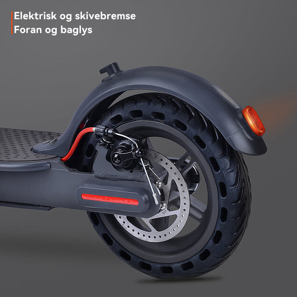 Forhjuls EBAS elektronisk bremse og bageste skivebremse sikrer den højeste sikkerhed. Dobbeltbremser reducerer kraftigt den tid, det tager at bremse.
