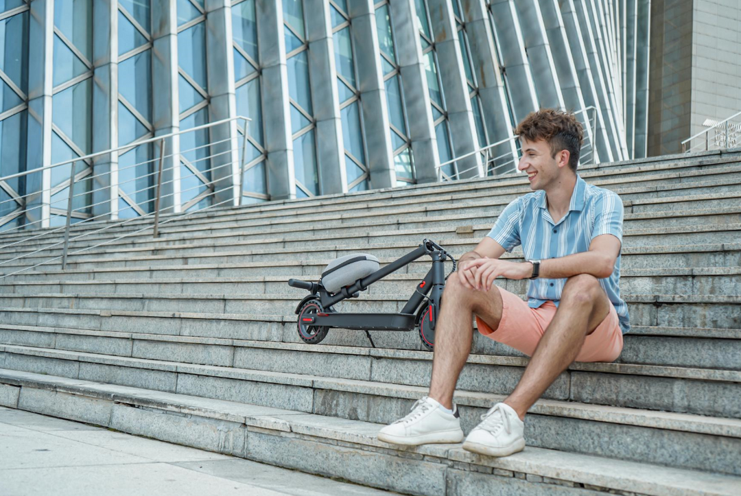 El løbehjulet foldes i ét trin og passer nemt i bagagerummet på en bil. Nettovægten er 12 kg, hvilket gør det let at tage med i metroen eller elevatorer – åbner op for ubegrænsede muligheder.