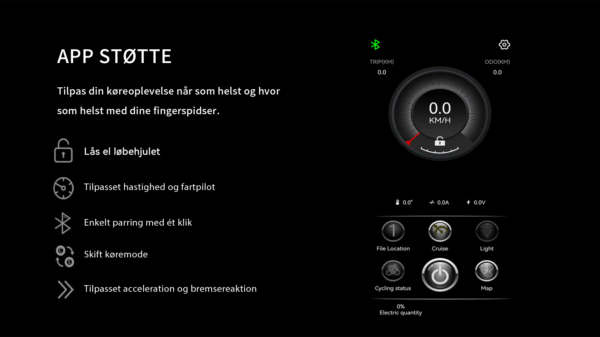 3 hastighedsindstillinger: Øko | Normal | Sport