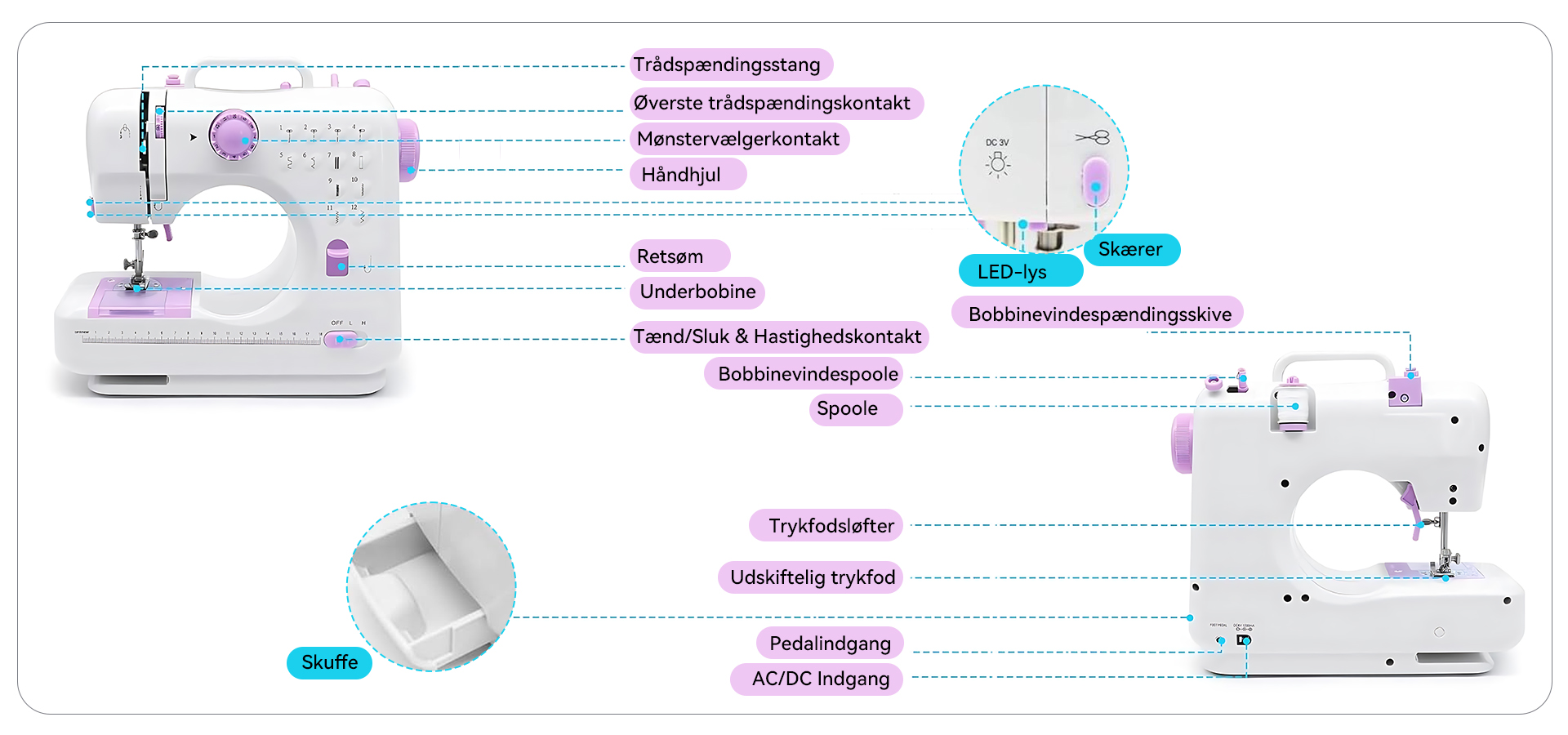 Gør det nemt at udføre kantsyning, sy knaphuller og håndtere almindelige syopgaver i hverdagen.